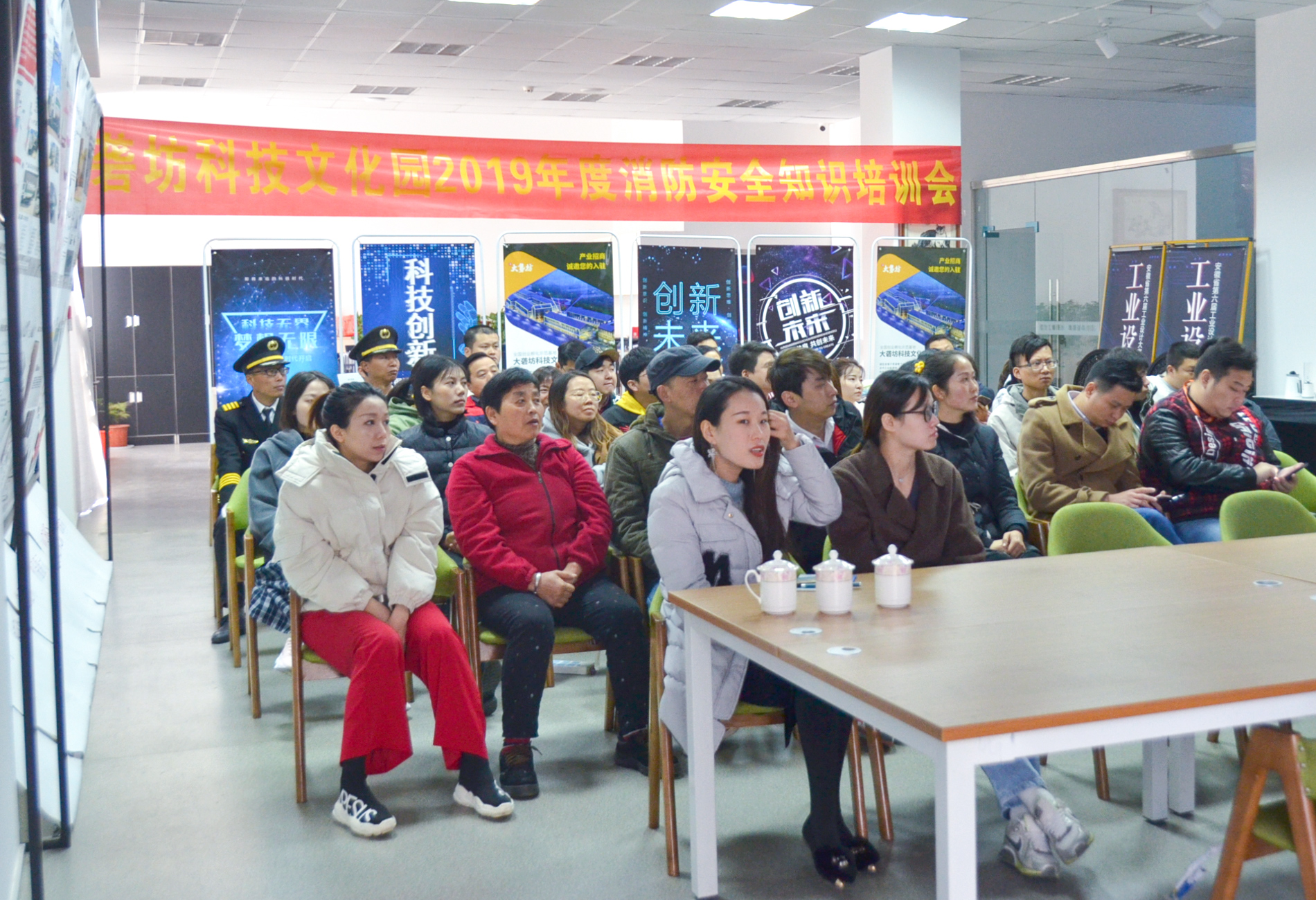 為加強(qiáng)園區(qū)企業(yè)人員的消防安全意識(shí),進(jìn)一步普及消防安全基本常識(shí),學(xué)習(xí)掌握各種消防設(shè)施的使用方法,提高自防自救能力。大礱坊科技文化園于11月19日上午邀請(qǐng)金馬門消防中隊(duì)白教官,在A03棟一樓開展“消防安全培訓(xùn)及演練”。園區(qū)企業(yè)負(fù)責(zé)人、消防安全責(zé)任人、企業(yè)行政、企業(yè)員工等共45人參與活動(dòng)。
