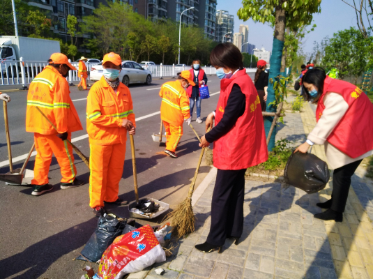 志愿者成了一道亮麗的風景線,也給社區(qū)帶來了優(yōu)美整潔的環(huán)境,用實際行動喚起了人們的愛環(huán)境意識。全體黨員志愿者身著志愿者隊服,大家手拿掃帚、簸箕等工具,發(fā)揚不怕苦、不怕臟的精神,分工合作,對沿路廢棄物品、塑料垃圾等進行了全面認真的清理打掃,不放過任何細節(jié),雜草、垃圾袋、廢紙屑、小煙頭都被清掃干凈。經(jīng)過大家的努力勞動,道路面貌煥然一新。