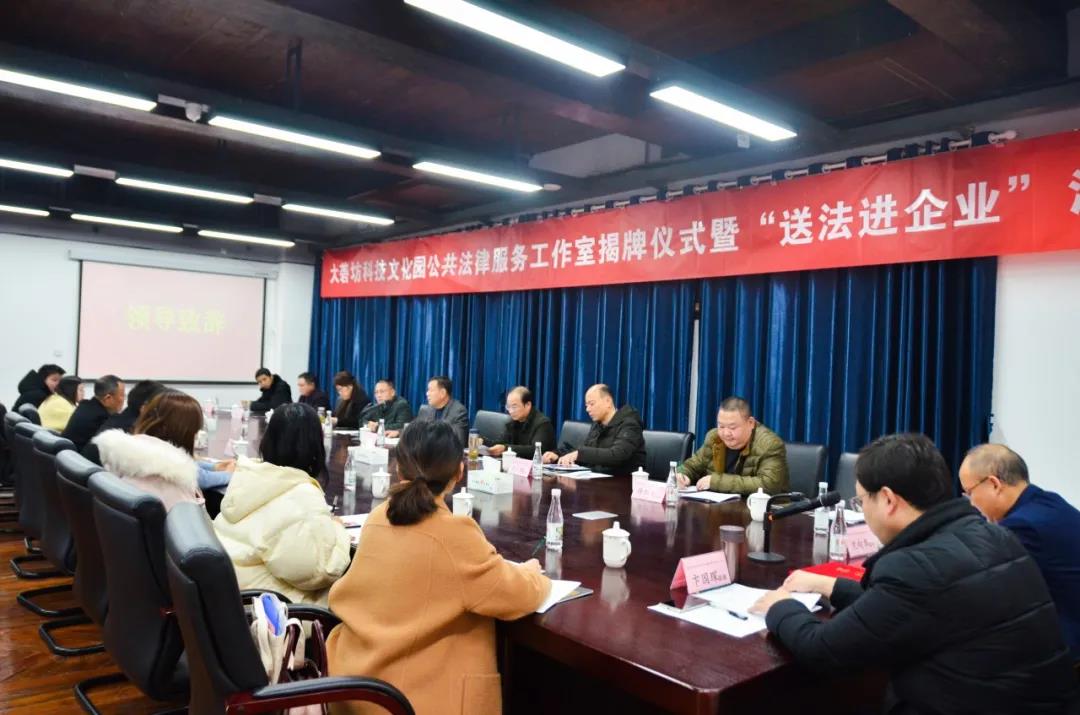 12月11日,大礱坊科技文化園公共法律服務(wù)工作室揭牌儀式暨“送法進企業(yè)”活動在園開展,區(qū)司法局、區(qū)委政法委、區(qū)法院、區(qū)檢察院、區(qū)工商聯(lián)、區(qū)經(jīng)信局、區(qū)委常委、政法委書記魏峰及各成員單位、園區(qū)負(fù)責(zé)人、企業(yè)代表等50余人出席活動。